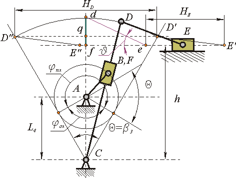 механизмов понимают определение линейных размеров и угловых положений звеньев