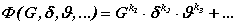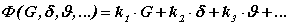 - габариты механизма, δ - точность механизма, J - углы давления в КП механизма, ki