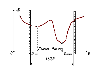 нашем примере в этой области целевая функция имеет два минимума: локальный при рл.опт и глобальный при ргл.опт .