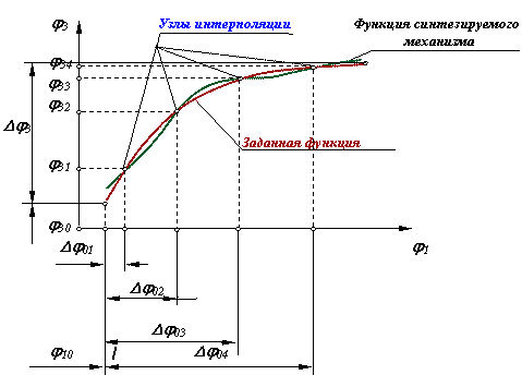 таким образом механизма будет совпадать с заданной функцией в выбранных точках